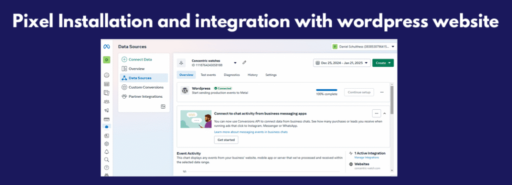 - ✅ Installing & integrating Facebook Pixel with her WordPress website for conversion tracking.