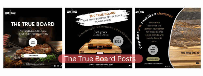 This project highlights the power of creative social media design in shaping consumer perception and driving sales. With bold visuals, persuasive copy, and clear calls to action, The True Board’s Facebook and Instagram campaign successfully introduced the product to its target audience and strengthened its position as a premium kitchen essential.